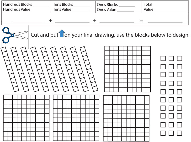Place Value Pictures provides an engaging way for students to work with hundreds, tens, and ones blocks in a way that combines math and art. it creates an interactive way for students to explore what builds larger numbers while giving students the opportunity to discover how to write a number that is composed of two tens and eleven ones (regrouping).